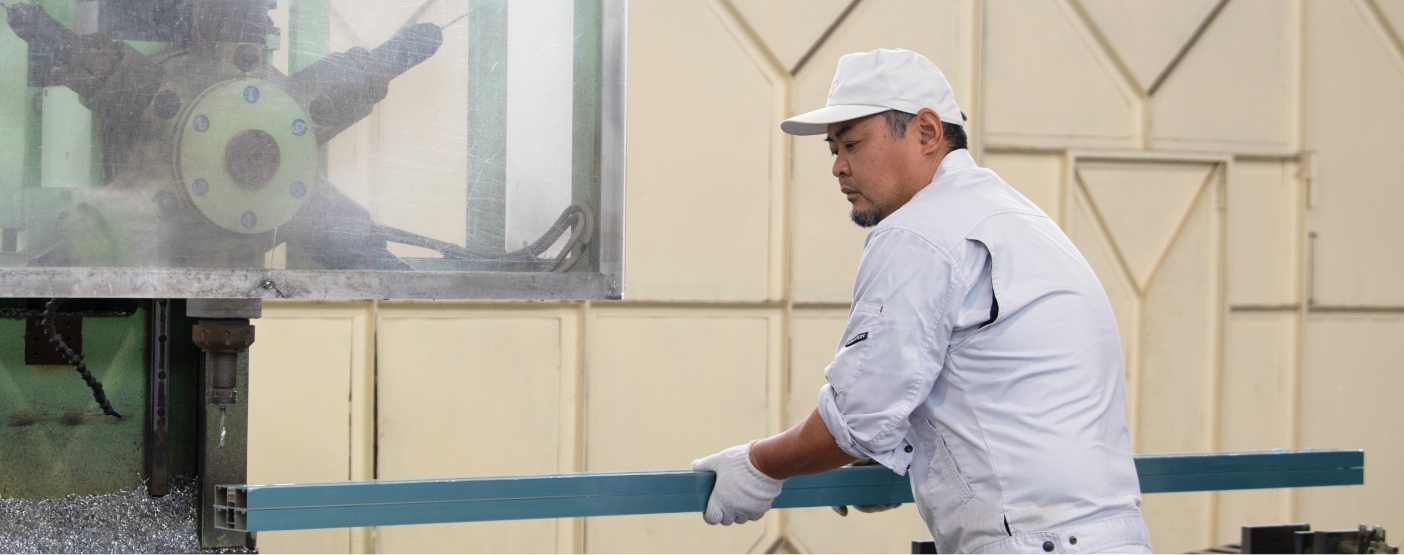 お客様の要望に応じたサッシを設計書に基づいて製造・加工します。主に八街工場での作業が中心で、図面を見ながら機械や工具を使って、サッシをひとつひとつ丁寧に作っていきます。